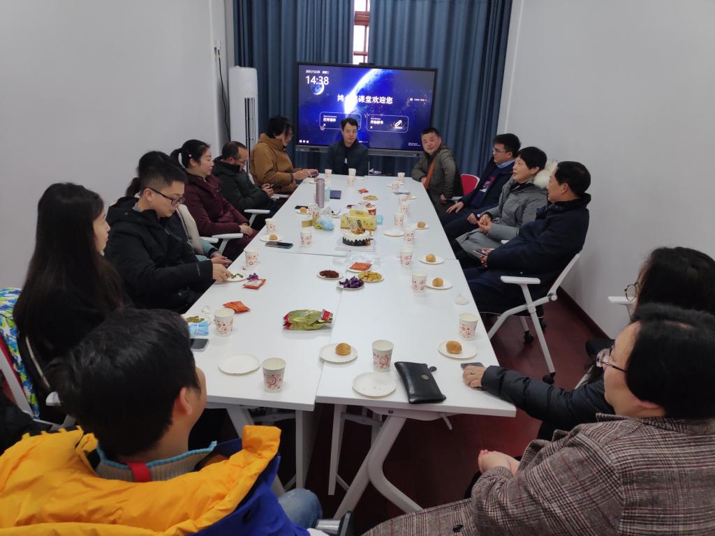 教职工们合唱生日歌,互送生日祝福。大家品尝着生日蛋糕和甜点,在优美动听的音乐旋律中亲切交谈,整个会议室里洋溢着温馨和幸福。