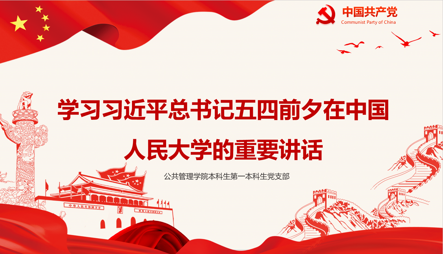 5月3日晚,本科生第一党支部组织学习习近平总书记考察中国人民大学的重要讲话精神。支部书记闫振振主持学习活动,支部全体党员参加学习。