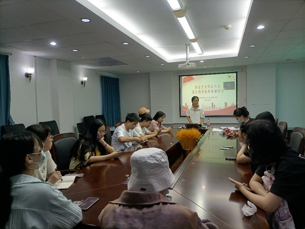 会议首先讨论黄诗雯、李丽东、胡芳倩三位同志的转正事宜。经过预备党员宣读转正申请、与会其他党员发表意见,现场表决等环节,一致同意三位同志如期转为中共正式党员。