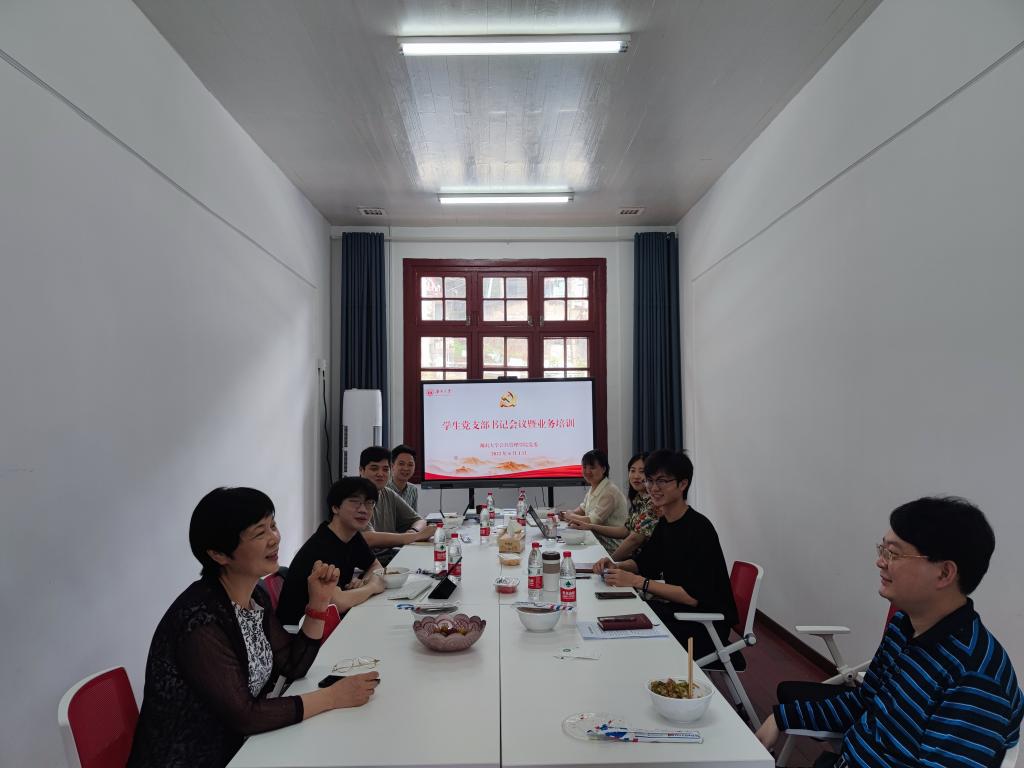 于院楼220室召开学生党支部书记午餐会暨业务培训会,会议由学院组织干事杨锦滔主持,学院党委书记付蓉芬、学院党委副书记、纪委书记杜倩博出席会议,全体学生党支部书记参加会议。