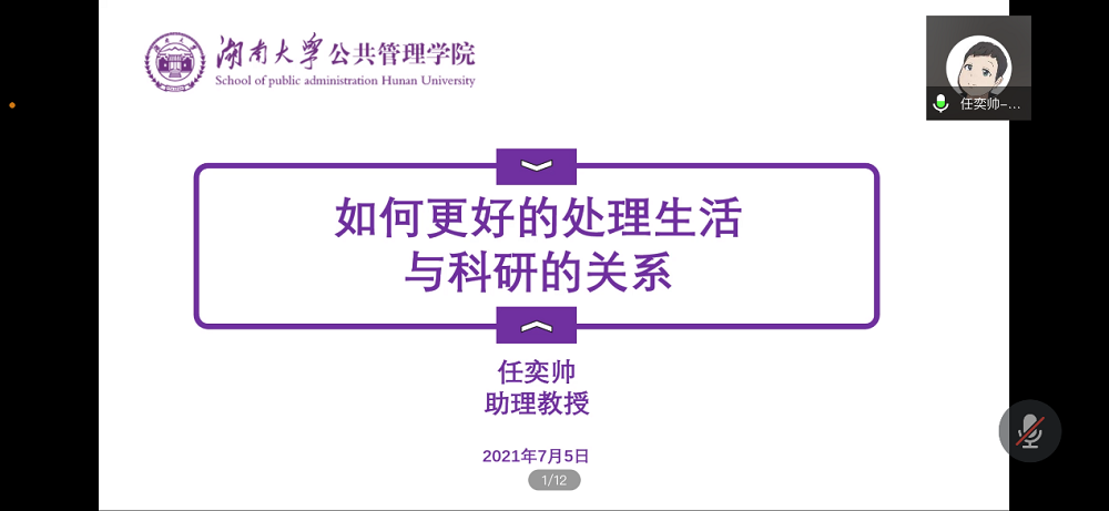 下午,学院刘盼副教授、何韵副教授、任奕帅助理教授分别为营员作主题为《行为科学视角下的公共管理研究》、《中国的崛起与青年人的使命》、《如何更好的处理生活与科研的关系》的学术讲座。刘盼老师由三位诺贝尔经济学奖得主引入说明什么是“行为公共管理”,深入分析了“助推”策略涵盖的类型及其在公共政策优化设计中的运用;何韵老师从经济、军事、国际地位等角度深刻分析中国目前的发展状况,从“修昔底德陷阱”到“中国和平崛起”指出中国崛起面临的困境和出路,鼓励营员树立远大理想,担负时代责任;任奕帅老师重点从“如何获得idea?”、“学术论文写作基本结构的内容”等方面为营员提供学术研究生活建议,最后强调学术研究重在坚持,需要劳逸结合。营员们积极在评论区与老师互动交流,强化了自身对观点的吸收与理解。