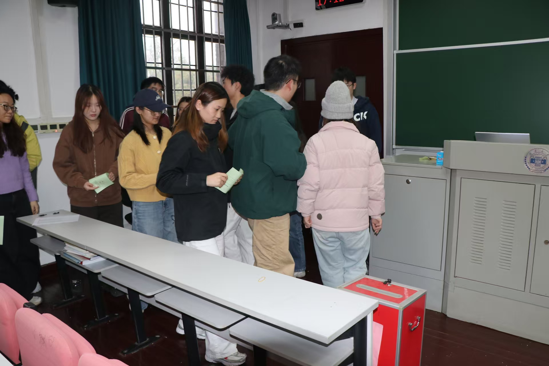 第七届学生会主席团、研究生会主席团。候选人介绍环节结束后,正式代表开始填写选票并投票。在总监票人杨柳、监票人王子洋等人的监督下,总计票人郑灿威、计票人张家宁等人在现场组织清点选票。经过代表们的郑重投票,王佳程、郑雅杰、姚宇睿当选为第七届学生会主席团成员,王思琪、常铖、石静荣当选为第七届研究生会主席团成员。大会选举过程公开透明、规范有序,充分体现了公平、公正、公开的原则。