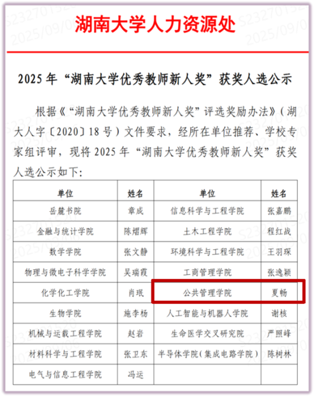师资队伍扩容提质,学术影响力持续攀升。谭海波教授入选国家级高层次青年人才项目,阳义南获聘湖南省芙蓉学者奖励计划青年学者,任奕帅获湖南省自然科学基金优秀青年项目,夏畅获湖南大学优秀教师新人奖。周蔚、陈坤秋获学院本科生优秀导师。季玟希、王茜、王亚星、彭莹、夏守智、王维方参加学院教学基本功大赛并获奖。引进海内外青年才俊5人,分别是:王维方、夏守智、王茜、杨柳清沛。19位教师入选“2025全国高被引学者”名单。