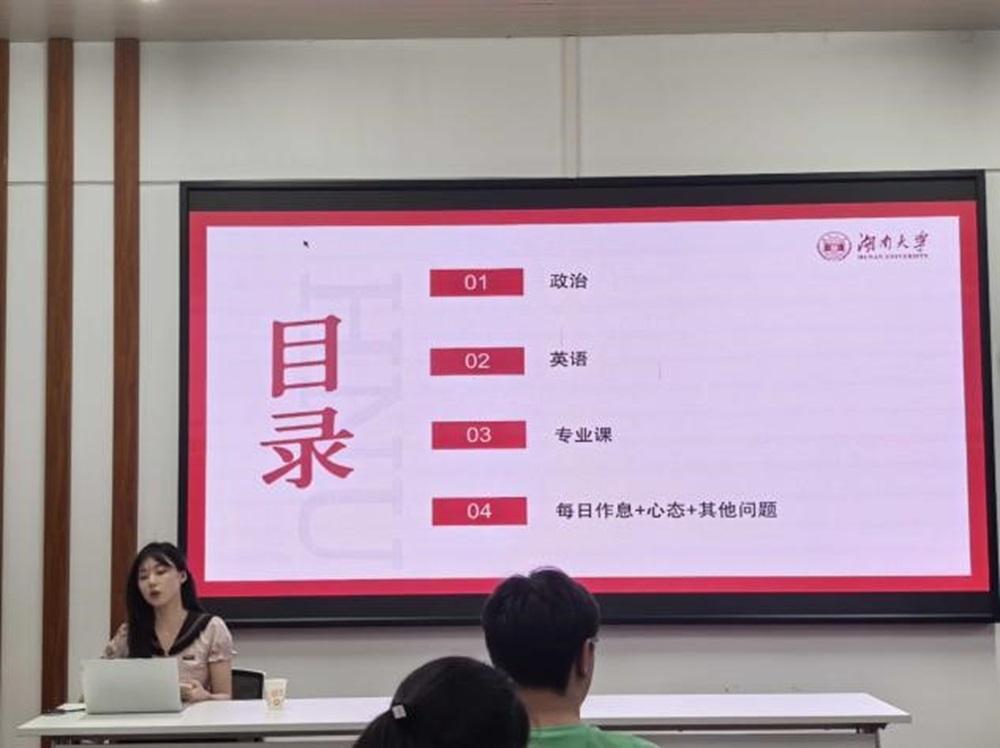 随后,考研至湖南大学的胡益彰同学从目标择校、备考经验与心得体会三方面进行分享。