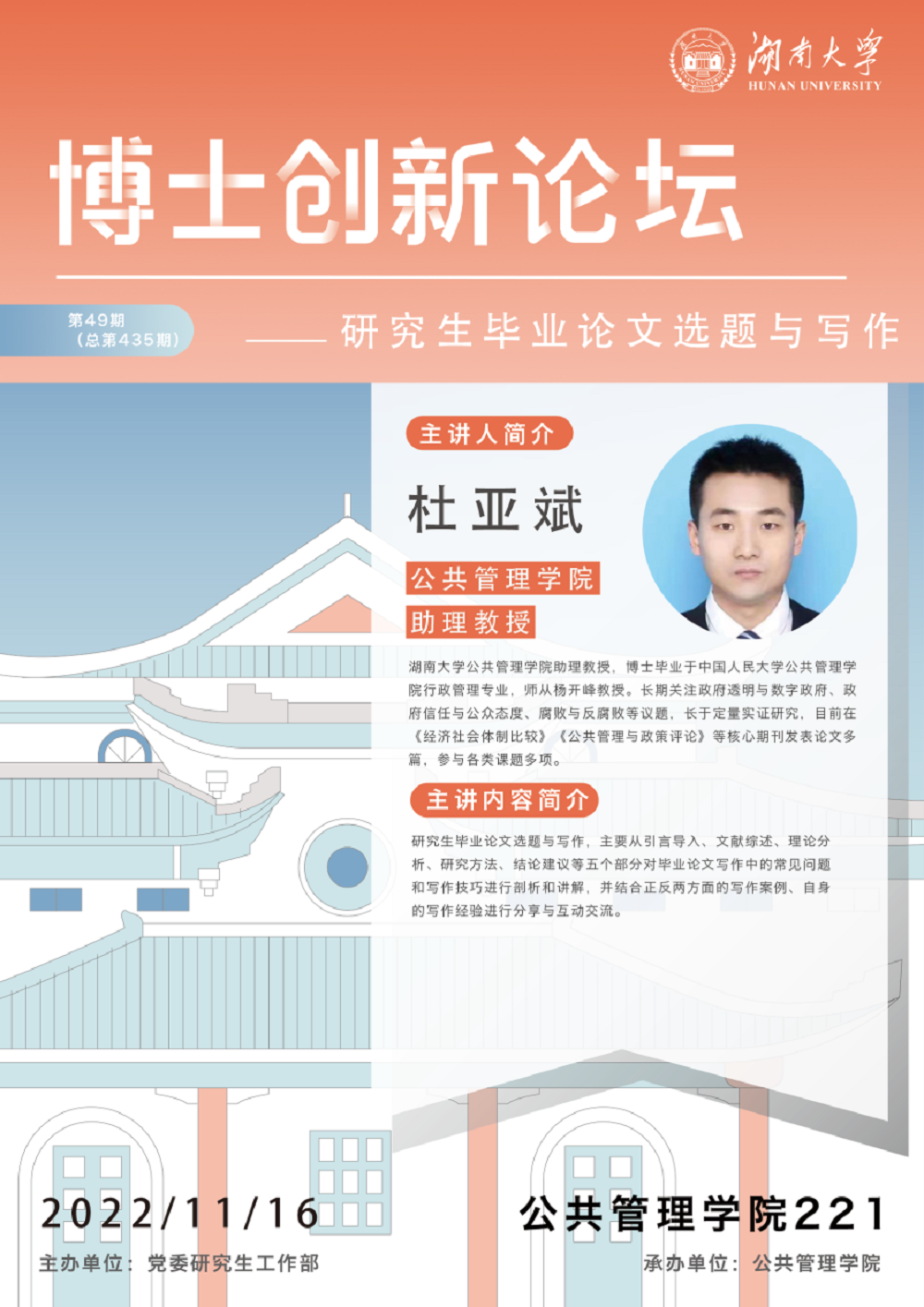 11月16日晚,2022年第49期(总第435期)湖南大学博士创新论坛暨国产自拍色情
