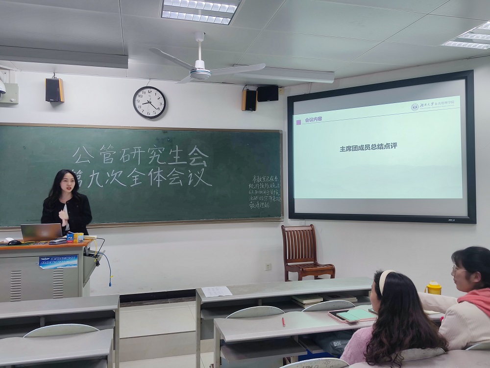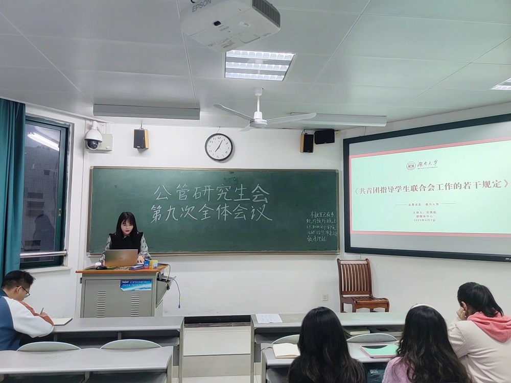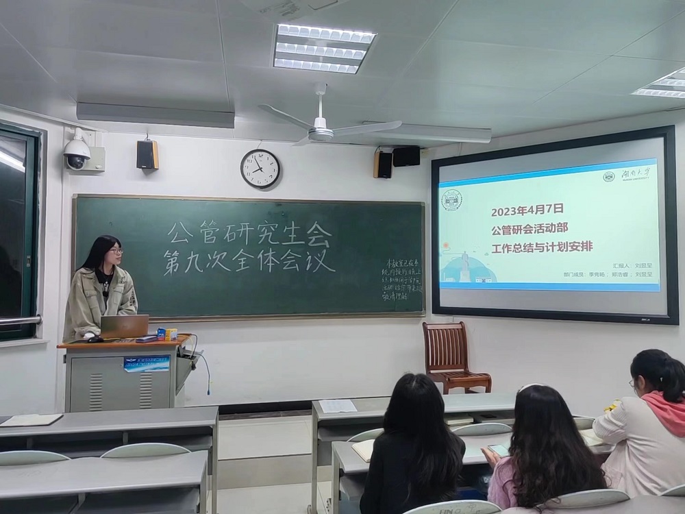 研究生会第九次全体会议在湖南大学财院校区水上教学楼502教室召开。综合服务部负责人叶林康主持会议,研究生会全体成员参会。